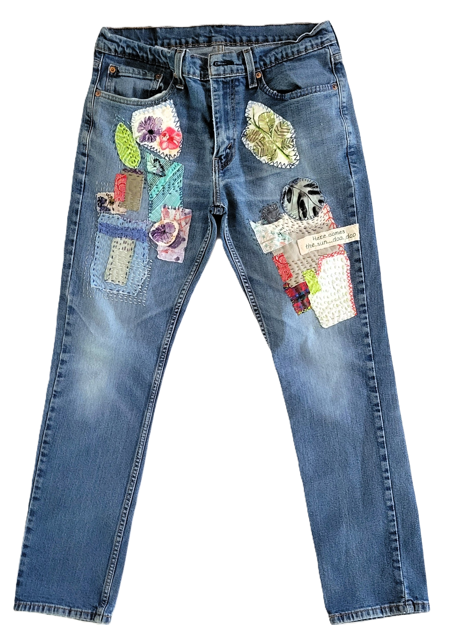 Handcrafted denim with vibrant appliqués, embroidery, and stitches.