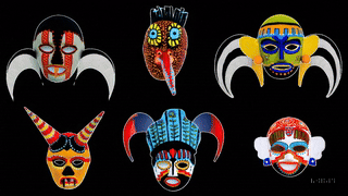 A collection of handcrafted masks featuring vibrant colors, intricate patterns, and symbolic elements, inspired by cultural heritage and folklore.